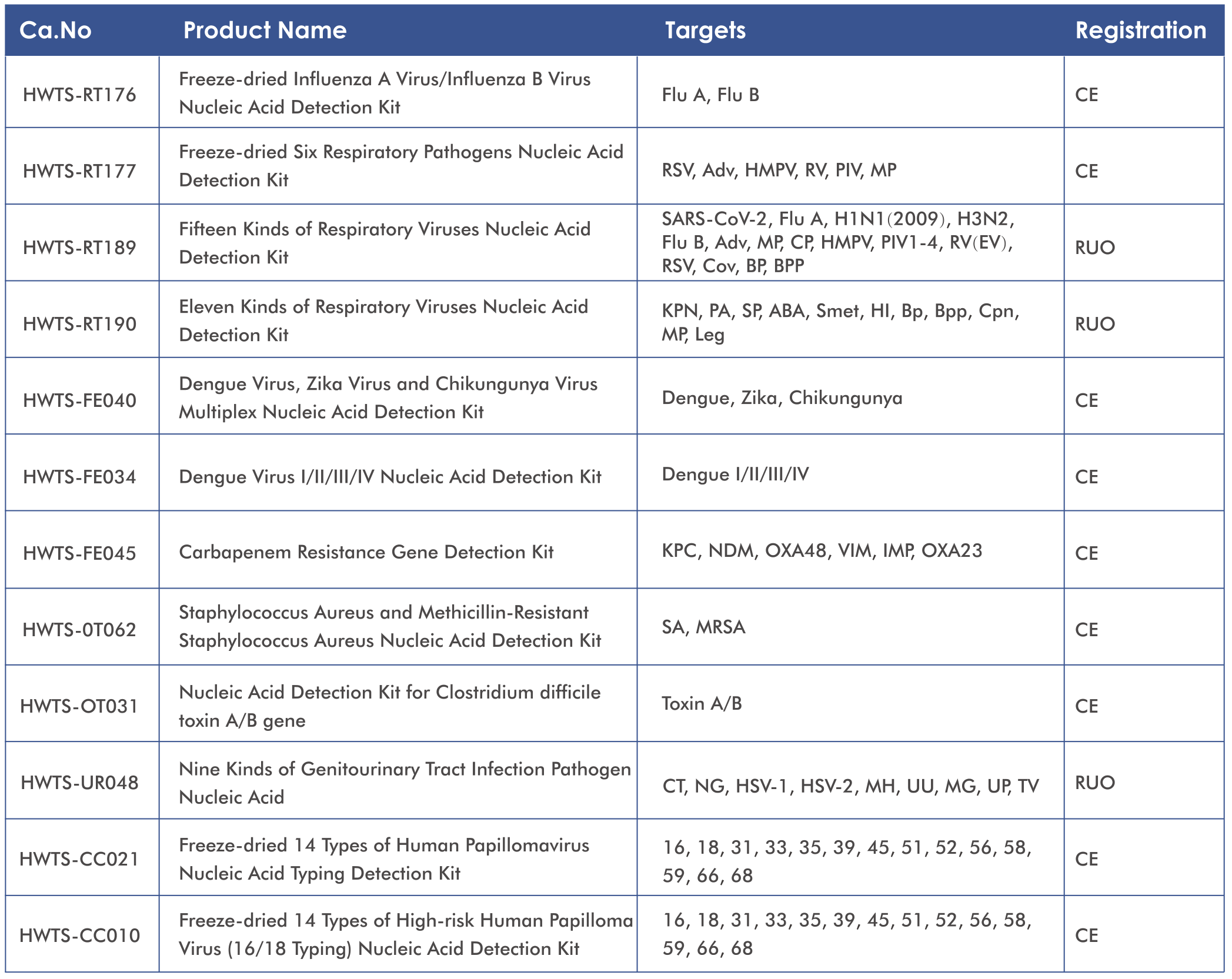 | Sample types | Serum, plasma, whole blood, urine, stool, sputum, etc. |