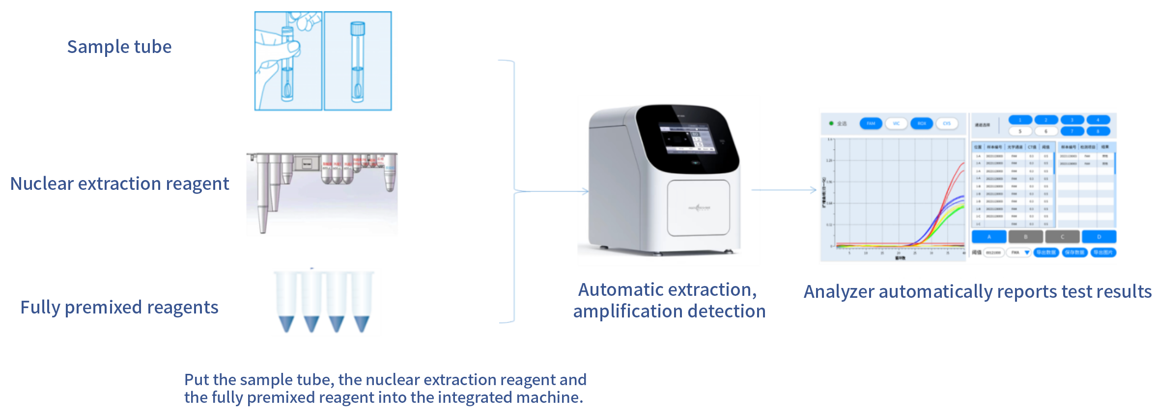 1) Easy Operation: Sample In & Result Out. Only add the collected clinical samples manually and the entire testing process shall be completed automatically by the System;