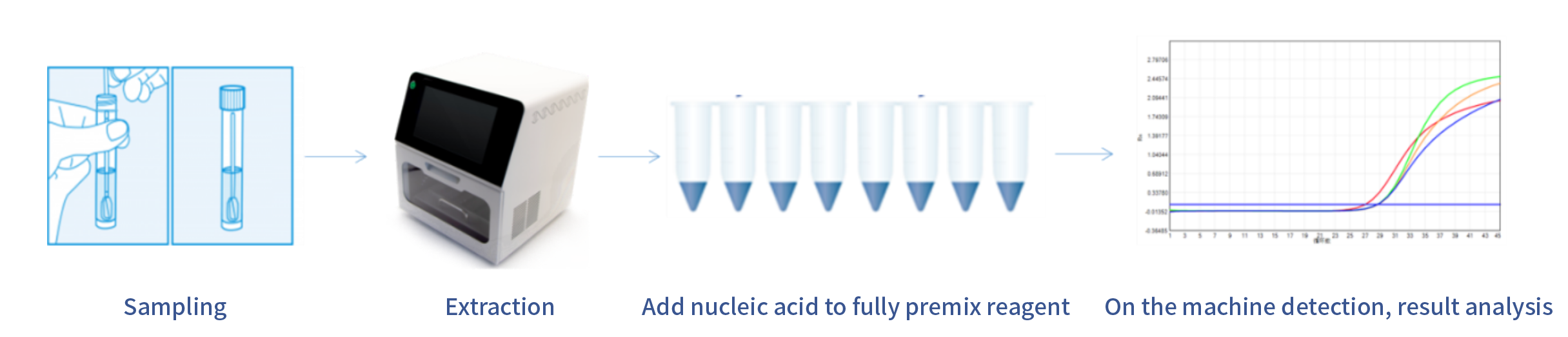 2) Efficiency: Integrated sample processing and rapid RT-PCR reaction system enable the entire testing process to be completed within 1 hour, facilitating timely treatment and reducing transmission risk;