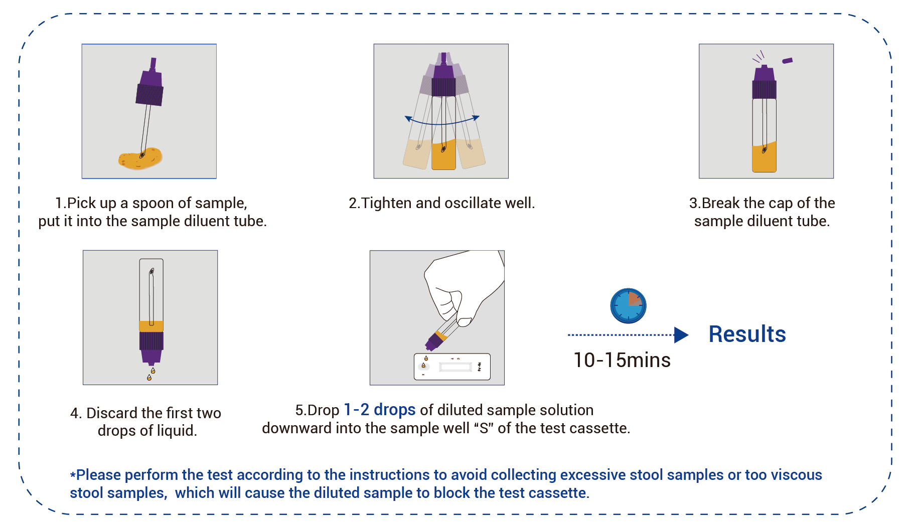 1. Rapid qualitative detection of Helicobacter pylori antigen in human stool sample in 10-15 min;
